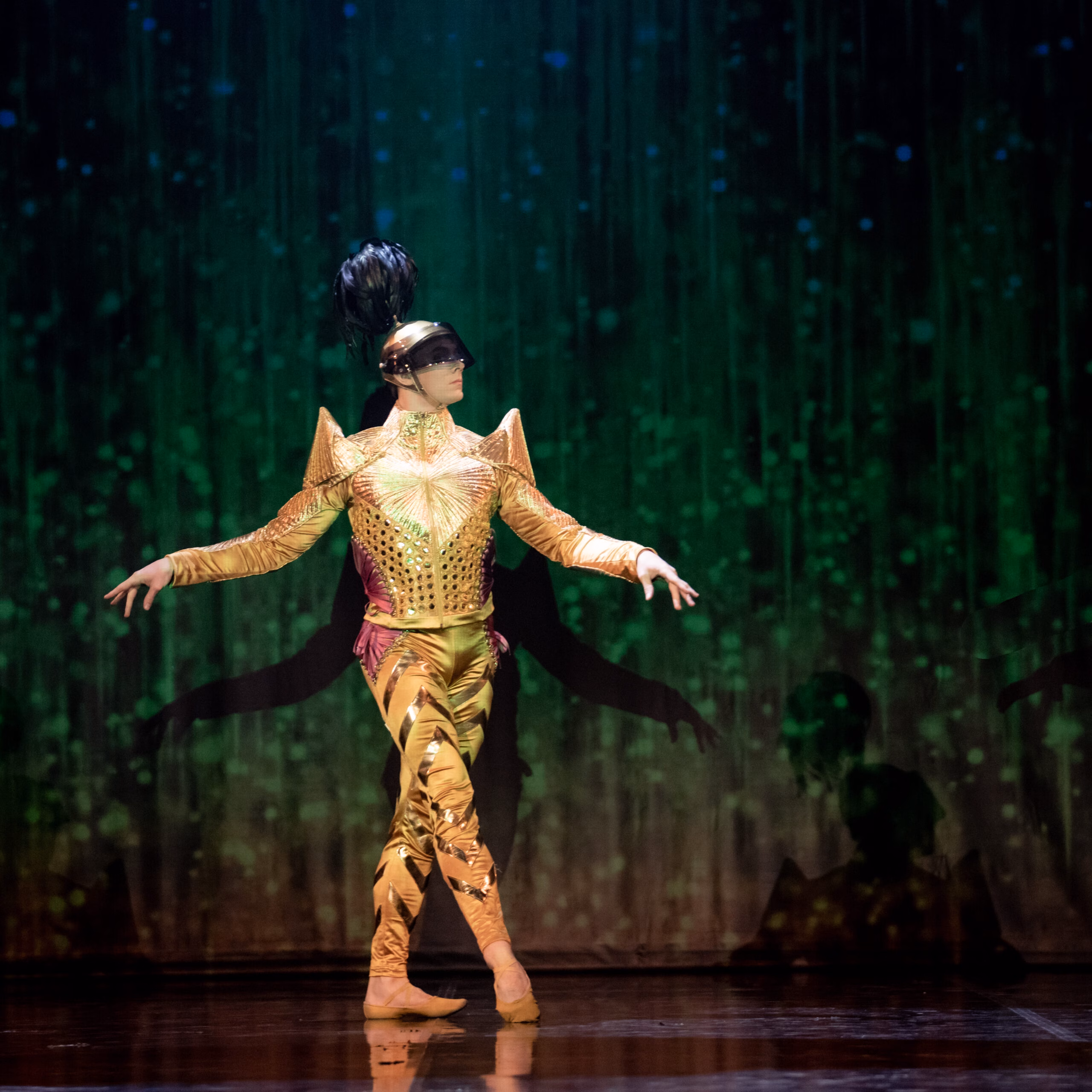 Mind jäi kummitama küsimus, miks otsustas koreograaf lavastada väga palju balleriinide koreograafiat varvaskingades. Kust varvasking üldse tuli?43 Louis XIV ajastu oma kehakasutuse muutustega on balleti sünnis ja arengus sedavõrd põnev ajajärk, et huvitavam olnuks, kui teose tantsukeel ammutanuks inspiratsiooni tolle ajastu stiilist, selle asemel et ekspluateerida balleti ja varvaskinga otsekui igavest kokkukuuluvust. Barokihõngulised liikumised olid igati nauditavad ja nende suurem kasutamine olnuks teretulnud. Ilmselt kardeti siin aga lavastuse langemist stereotüüpidesse. Nii jäidki maskiballi passepied ja sarabande kõlama kavalehe sisukokkuvõttes, mitte aga antud stseeni koreograafias. Õukonnapeo orgialikkus väljendus ajastule ebaloomulikult võimsalt avatud puusavaagnaga pas de patineurs’i tantsimisega.44 Balleti arengus on väga põnev en pointe’i kasutuselevõtmine maist ja taevalikku ühendava vikerkaaresillana, mitte aga enesestmõistetava tehnilise võttena. Kindlamad valikud selles osas oleksid toetanud lavateost (kus tegelaskujudele omistati julgelt nii maiseid kui ebamaiseid tähendusi), kehtestamaks erinevaid maailmu ning joonistamaks välja tegelaskujude kahestumist.