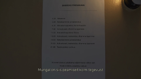 Bhikkhu päevakava. Episoodist „Kannatusest vabanemise tee”.