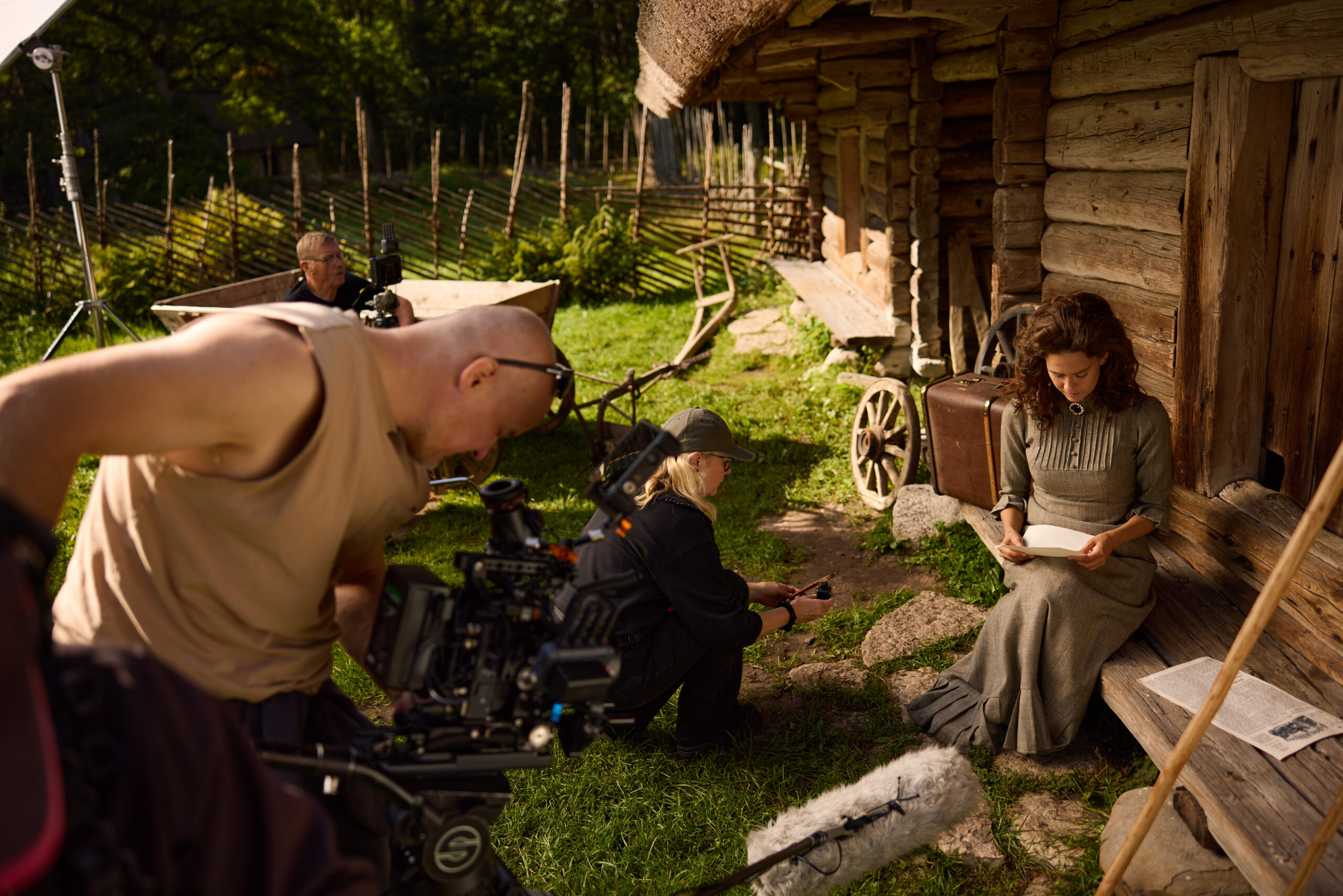 „Säärase mulgi” võtteplatsil. Kaamera taga režissöör Ergo Kuld. Koidula osas Maria Teresa Kalmet. Mardo Männimägi foto