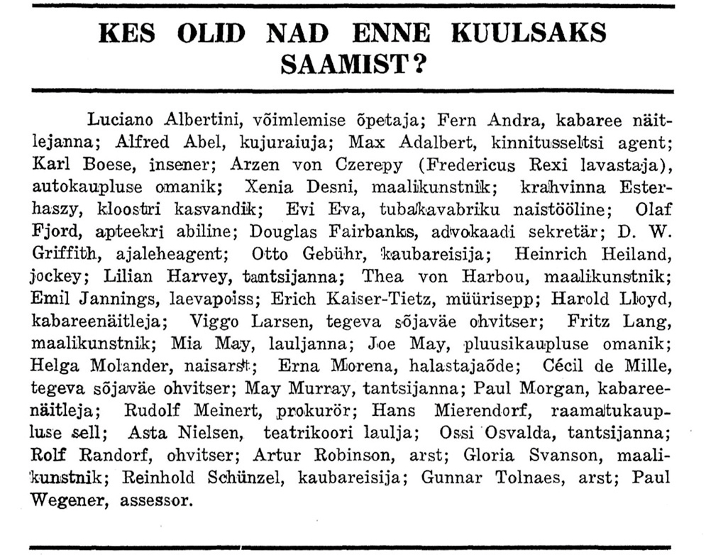 1927–1928 ilmus kolm numbrit ajakirja Kino Film Henrik Saare toimetamisel.