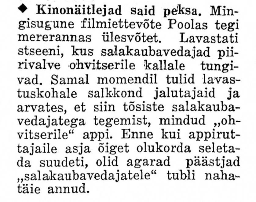 1930 tuli ekraanile „Kire lained”, esimene Eesti-Saksa koostööfilm, mille lavastas Vladimir Gaidarov ja mille staariks kutsuti saksa filmidest tuttav Sloveenia iludus Ita Rina, eestlastest tegid kaasa Hugo Laur ja Ants Eskola. Film räägib salapiirituse vedajatest.