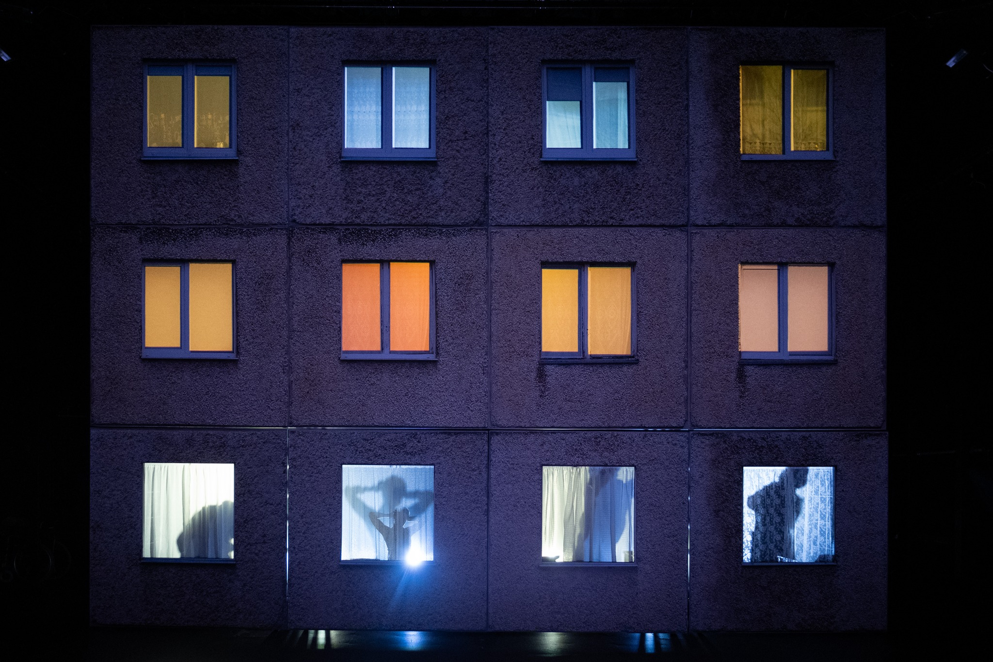 Samad näitlejad, uued lood, sama rütm ja ülesehitus. Halli paneelmajafassaadi alumised ehitusplokid hakkavad küll liikuma, avanema ja fassaad justkui purunema, kuid ainult näiliselt. Koreograafilised vahepalad kujutavad musti inimvarje või puuris hoitud üksikuid linde. Koreograaf Ingmar Jõela valikud kinnistavad tunnet, et ei saa liikuda, mitte seda, et saab ka teisiti. Koreograafia roll on pakkuda hingetõmbeaega sõnadele ja mõtetele, seega jääb ta sõnateatrile omaselt klassikalisse väiksema venna või õe rolli. Kehad allutatakse sõnadele ja liikumine klassikalises teatris kehtivale tantsunormile.